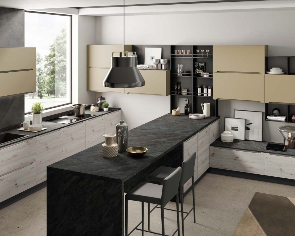 Frutto di un progetto sartoriale, la cucina Carima si distingue per la sua maniglia integrata all’anta, disponibile in finiture lucide, opache e effetto legno. Con un design accattivante e dinamico, Carima è una cucina in laminato di alta qualità che combina perfettamente comfort, estetica e funzionalità.