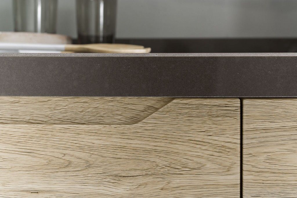 Il programma Carima utilizza ante in MDF con maniglia integrata dal design ricercato, classe E1, spessore 22 mm, rivestimento in PVC e raggio 3 sugli spigoli. La varietà di colori e finiture, insieme al loro sapiente accostamento, conferisce versatilità a questa cucina moderna, mentre le cerniere resistenti di alta qualità ne assicurano la lunga durata.